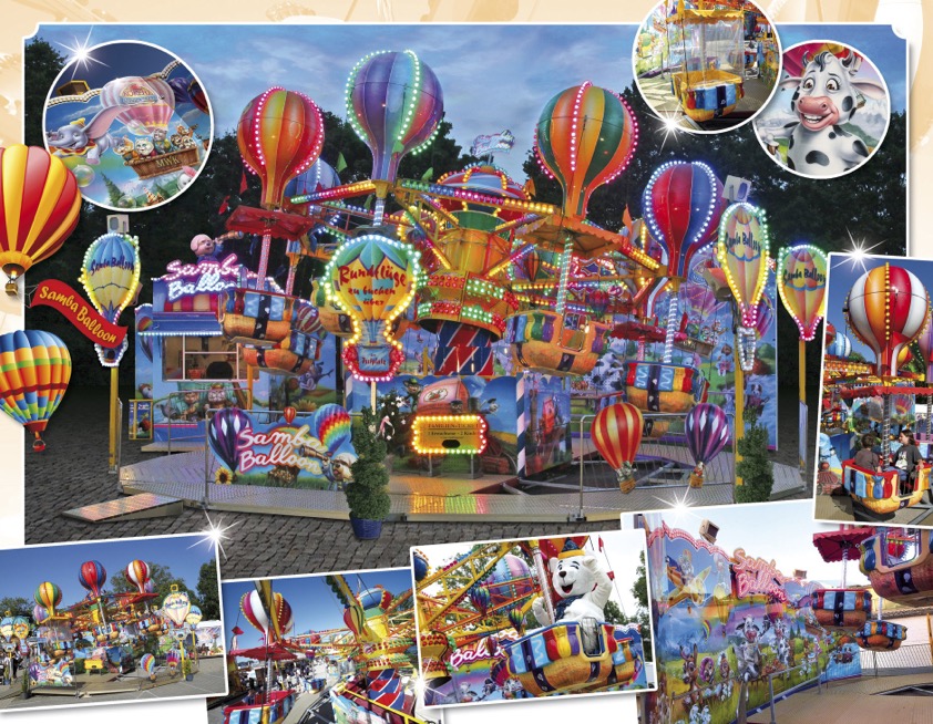 In den farbenfrohen Heißluftballons mit Fahrgastkörben bestreiten die kleinen und großen Fahrgäste eine erlebnisreiche und rasante Rundfahrt.